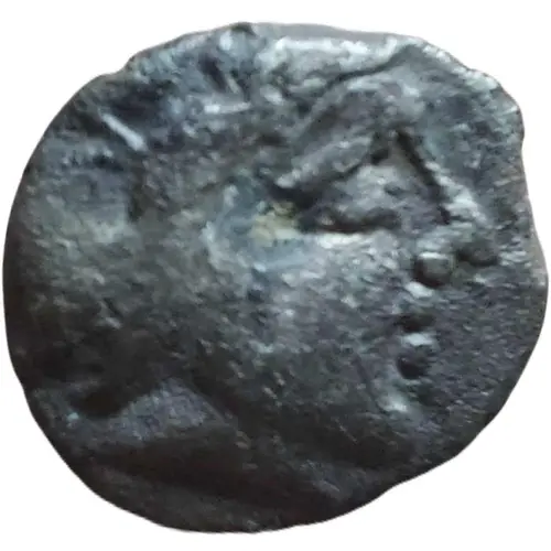| Opis awersu | Small head to right, surrounded by beaded cords, stylized hair. |