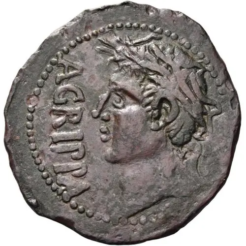 Aversbeschreibung Head of Agrippa, left, wearing rostral crown.