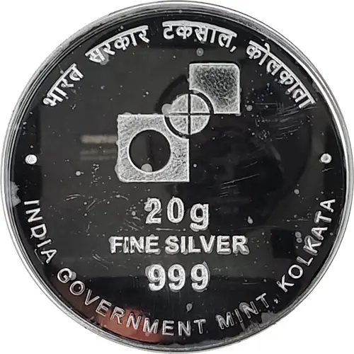 | نوشتههای روی توکن | भारत सरकार टकसाल, कोलकाता INDIA GOVERNMENT MINT, KOLKATA 20g FINE SILVER 999 |