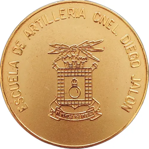 | Obverse lettering | ESCUELA DE ARTILLERIA CNEL. DIEGO JALON AD AUGUSTA PER ANGUSTA (Translation: Colonel Diego Jalón Artillery School To honors/greatness through difficulties) |