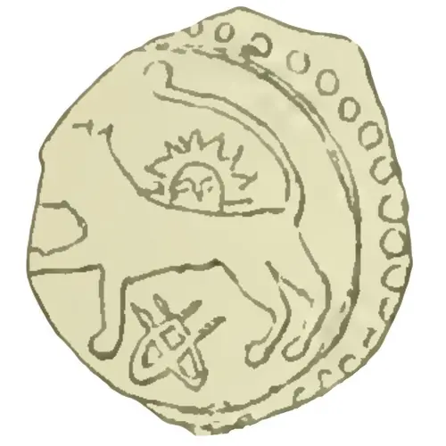 | Aversbeschreibung | Lion and sun to left with Tamgha (?) below. |