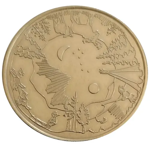 | توضیحات روی مدال | Animals and characters in landscapes with and without snow under an aurora borealis, stars, moon and sun. |