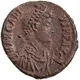 Descripción del reverso Emperor standing front and holding spear and resting hand on shield, with head turned right while Victory crowns him with wreath