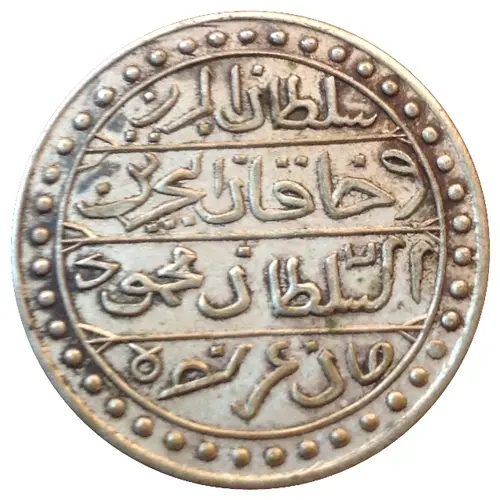 | Obverse lettering | سلطان البرين و خاقان البحرين السلطان محمود خان عز نصره (Translation: The sultan of the two lands and the Khagon of the two seas Sultan Mahmoud Khan may he be victorious.) |