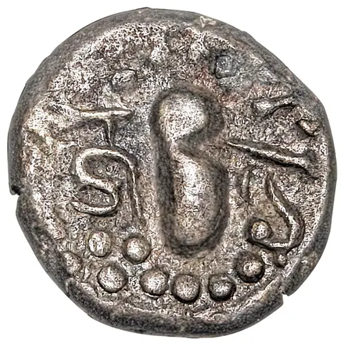 | 表面の説明 | Stylized Indo-Sassanian bust of king to right, Devanagari letter `Ja` behind bust in place of regular gadhaiya ear behind bust note: this is the only known Battle variant out of the 33 listed with `Ja` & the only one in Group 2 the ID Code for this variant is: T 6B/ 10; Rev: Type 6B, Obv: Eye & Nose Type 10 |