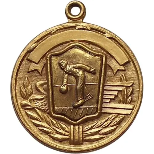 | Obverse description | Bowling player in a decorative frame. |