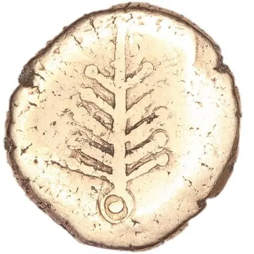 | Beschrijving voorzijde | Dobunnic tree symbol with ten branches, ring at base, on plain field. |