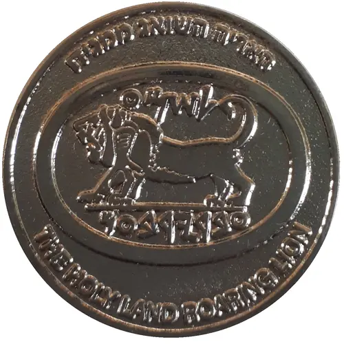 | نوشتههای روی توکن | האריה השואג ממגידו THE HOLY LAND ROARING LION |