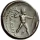 | Reverse description | Zeus striding to right, hurling his thunderbolt from his raised right hand; between his legs, star of eight rays; in the field to right, cornucopiae. |