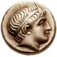 | Obverse description | Young male head right, wearing taenia with frontal horn |