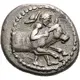 | Obverse description | Thessalos striding right, his petasos hanging from a cord around his neck, holding a band in both his hands around the head of the forepart of a bull moving right |
