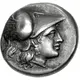 | Descripción del anverso | Helmeted head of Athena right |