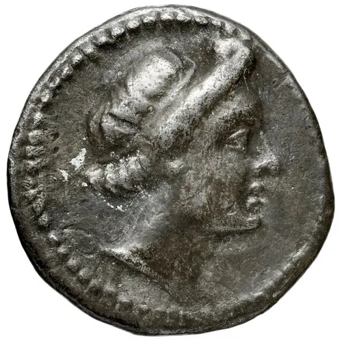 | Obverse description | Head of Artemis of Aptera right; hair rolled and bound with cord; border of dots. |