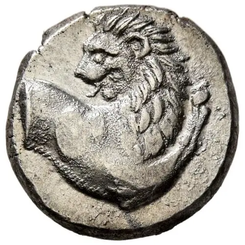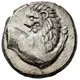 | توضیحات روی سکه | Forepart of a lion to right, head turned back to left. |