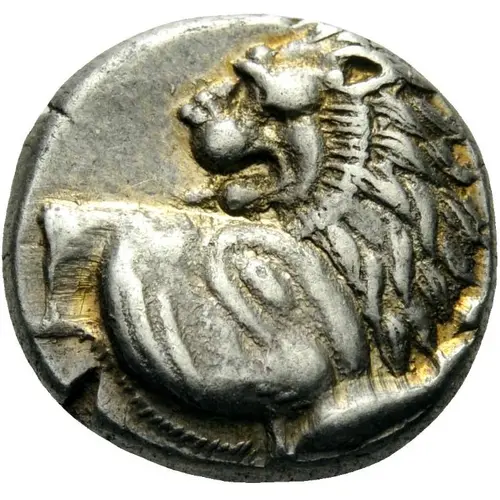 | توضیحات روی سکه | Forepart of a lion to right, his head turned left |