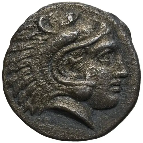 | Descrizione del dritto | Youthful, beardless, head of Herakles to right. |