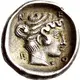 توضیحات پشت سکه Head of the nymph of Neapolis to right, her hair coiled around her head and with a bun at the back, wearing a plain necklace with a pendant
