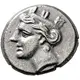 | توضیحات روی سکه | Head of a nymph to left, wearing turreted headdress. |
