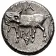 | Descripción del anverso | Bull standing left, head right; grape bunch below. |