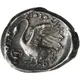 | Reverse description | Swan standing left, wings spread and the name of the magistrate around with a kantharos to the left. |