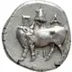 | توضیحات روی سکه | Bull standing left, head right; pilos above. |