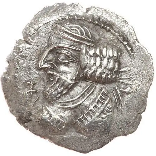 | Mô tả mặt trước | Bearded bust of Pakor II left, wearing diadem, anchor to left. |