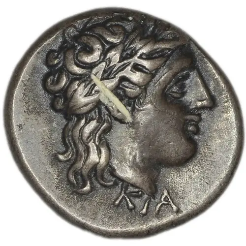 | Описание аверса | Laureate head of Apollo right. |