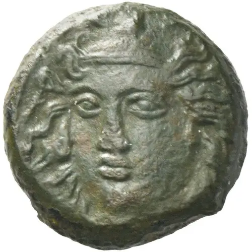 | توضیحات روی سکه | Head of nymph facing three-quarters left, wearing amphyx. |