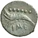 | توضیحات پشت سکه | Shrimp left; above, six pellets. |