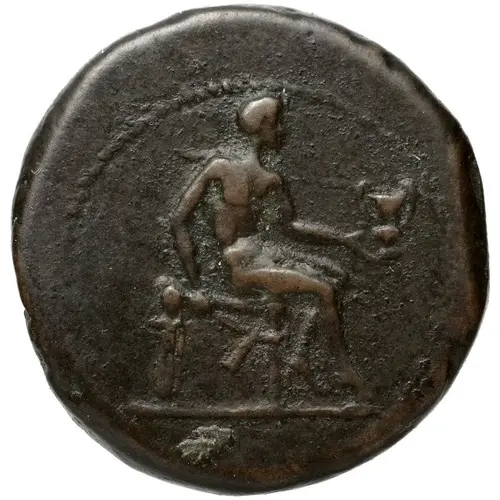 | Mô tả mặt trước | Young Hephaistos, nude, seated right on stool, holding hammer in right hand, kantharos in left. |