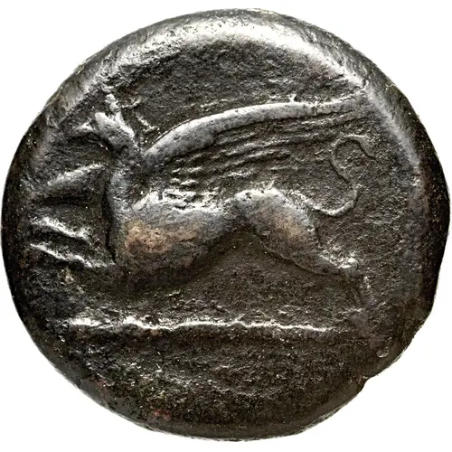 | Descrizione del dritto | Griffin leaping to the left, over a line of exergue. |