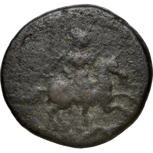 | Obverse description | Right rider rearing, armed with bow and spear, below a running hound. |