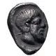 | Reverse description | Bearded head or Lepsynos facing right, small Λ behind and all within shallow incuse |