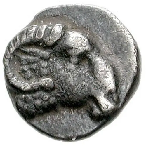 | Reversbeschreibung | Male head facing right. Carian letter to left |