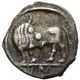 | Obverse description | Bull standing to left, head turned back to right; circular linear border. |