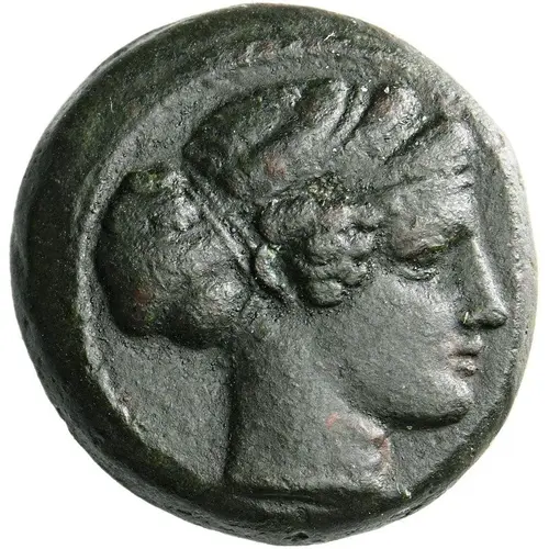 توضیحات روی سکه Head of Aigiste right, wearing sphendone and krobylos.