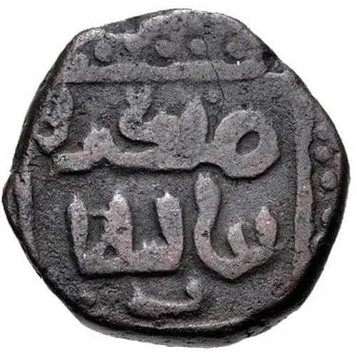 | Descrição do anverso | Two line inscription in square; beaded border |