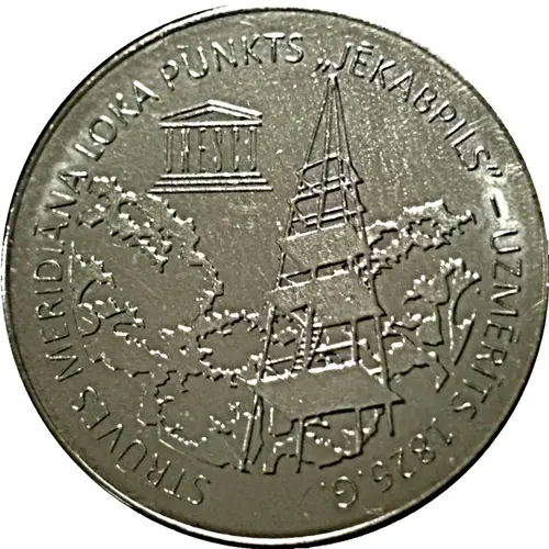 | Ön yüz lejandı | STRŪVES MERIDIĀNA LOKA PUNKTS `JĒKABPILS` - UZMĒRĪTS 1826.G. |