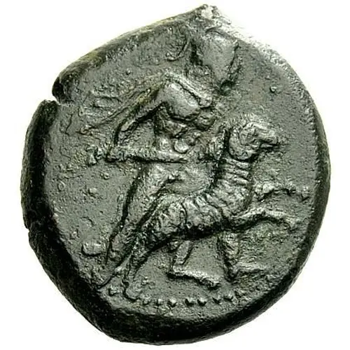 | توضیحات روی سکه | Warrior standing right, nude except for helmet and cloak, about to sacrifice a ram. |