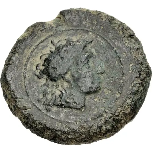 | Descrição do reverso | Bearded head of river god Herbessos right right, wreathed with reeds. |