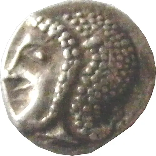 | Descripción del anverso | Archaic head of Artemis left |