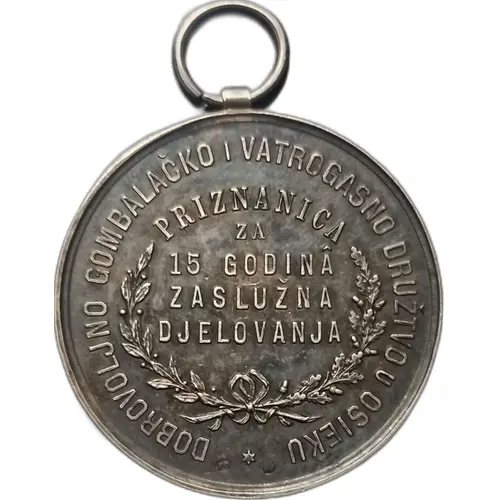 | Opschrift voorzijde | DOBROVOLJNO GOMBALAČKO I VATROGASNO DRUŽTVO U OSIEKU PRIZNANICA ZA 15 GODINA ZASLUŽA DJELOVANJA ✶ |