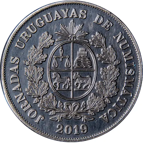 | Chữ khắc mặt trước | JORNADAS URUGUAYAS DE NUMISMÁTICA 2019 (Translation: Uruguayan Numismatic Days 2019) |