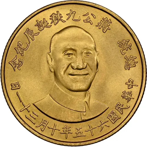 總統 蔣公九至誕辰紀念 中華民國六十五年十月三十一日 (Translation: In commemoration of the birthday of President Chiang Kai-shek Year 65, Month 10, Day 31 (or 31 October 1976)) |