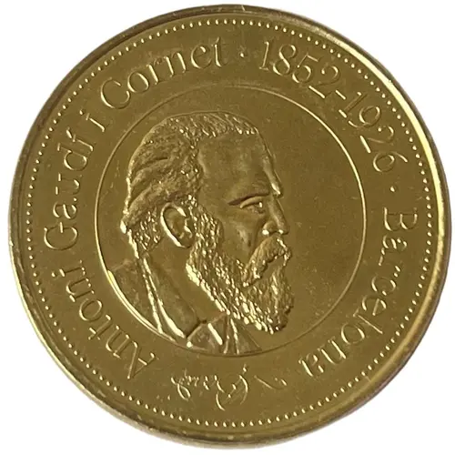 | توضیحات روی مدال | Portrait of Antoni Gaudí, Antoni Gaudí`s Signature |