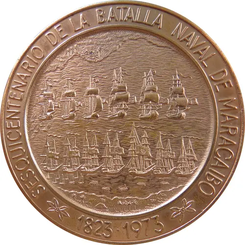 | نوشتههای روی مدال | SESQUICENTENARIO DE LA BATALLA DE MARACAIBO 1823-1973 (Translation: Sesquicentenary of the Battle of Maracaibo) |