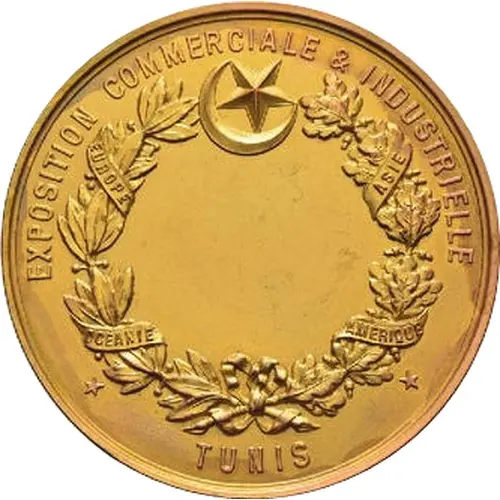 | Légende de l’avers | EXPOSITION COMMERCIALE & INDUSTRIELLE ★ TUNIS ★ (Translation: Trade & Industry Exhibition Tunis) |