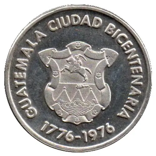 | Leyenda del anverso | GUATEMALA CIUDAD BICENTENARIA 1776-1976 (Translation: GUATEMALA BICENTENARY CITY 1776-1976) |