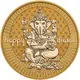 | Obverse description | A representation of Ganesha sitting on a cushion while being attended by a mouse, one of his traditional mounts, who offers sweets as a symbol of generosity. |