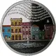 Fountain in the foreground and colorful houses behind, above the names of the countries participating in this series. |